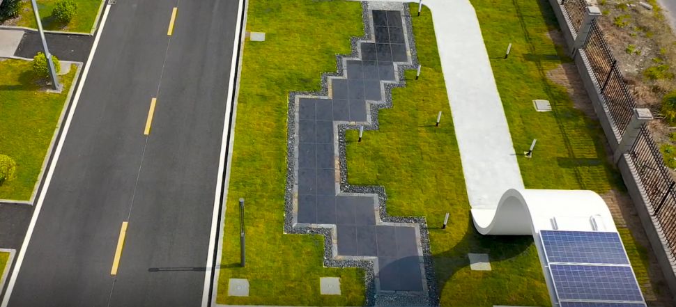观光、行道的光伏路面,占地面积约25平方米,安装了33块薄膜光伏路组件,作为绿化带的游步道连接光伏小屋与展示区。
