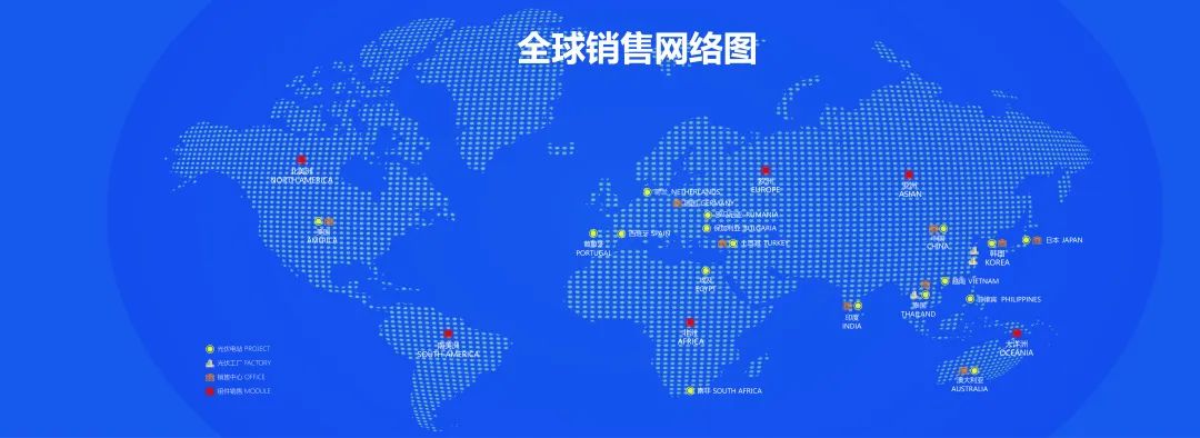 正泰太阳能自2006年开始进入国际市场,经过十余年行业深耕,海外业务遍及全球,已深度融入全球新能源产业链中。截止目前,正泰光伏组件销往泰国、西班牙、美国、保加利亚、荷兰、土耳其、印度、罗马尼亚、南非、韩国、日本、越南等55个国家,全球累计投资建设光伏电站超过4000兆瓦,光伏组件拥有卓越的产品质量、长时间的可追溯性以及长期现场运行稳定性。