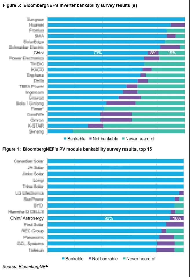 ブルームバーグ新エネルギー財政経済(BNEF)は「2020年度の太陽光モジュールとインバータのバンカビリティレポート」を発表しました。それに先立ち、チントグループの太陽光モジュールとインバータは共に融資価値ランキングの世界トップ10入りを果たしたことが発表されました。この報告書は、チントグループの太陽光モジュールとインバータは銀行からの融資が受けられやすいという意味です。