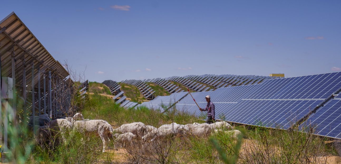 库布其沙光互补电站在修复沙漠生态、生产清洁电力的同时,还能实现精准扶贫,正泰通过流转租用农民土地,总共帮扶了800多户贫困户。通过提供组件清洗、园区养殖等工作机会为周边贫困的牧民带来持续的经济创收,年营业收入不低于3.5万元。
